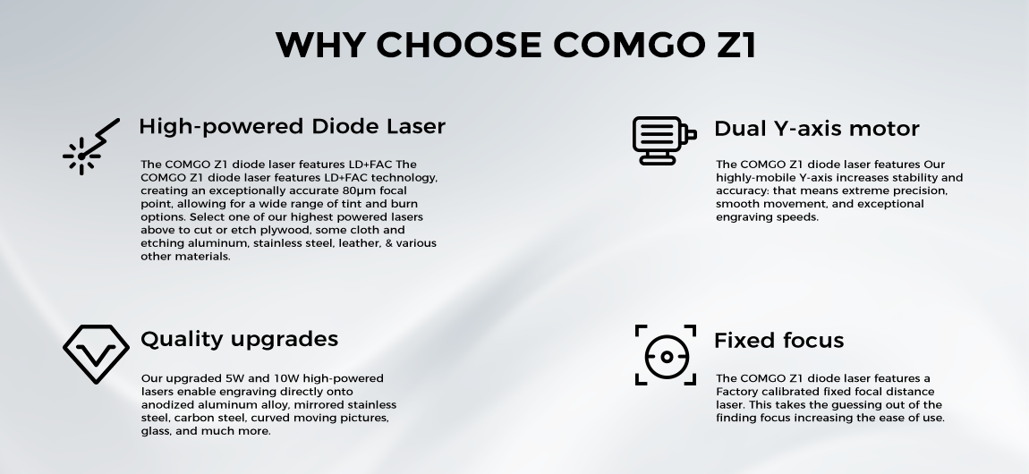 The COMGO 21 laser engraver features a functional engraving surface area of 400 x 400 mm (157 x 15.7 Inches). The larger area gives more possibilities for creativity.