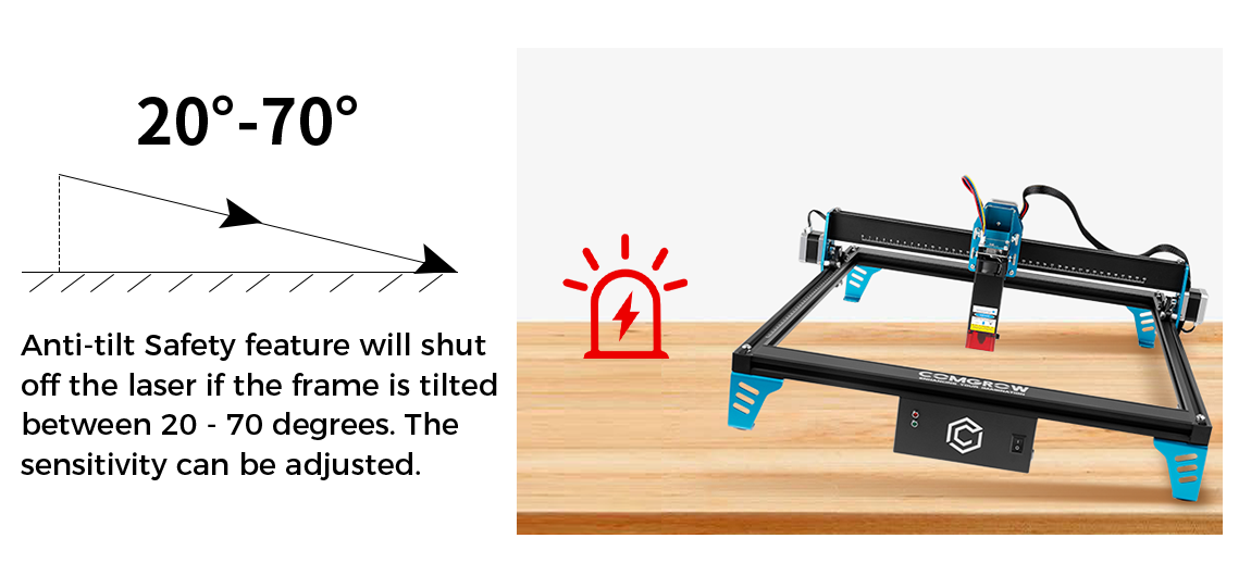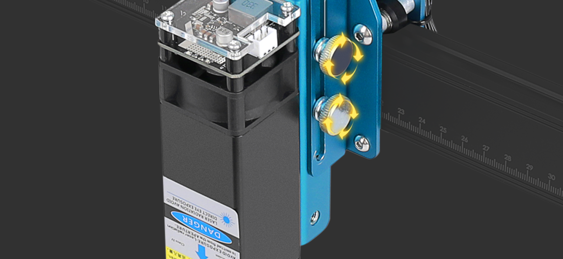 Your laser is factory-calibrated for precise focus. there's no need to put your finger on the laser to adjust the focus, just loosen the adjusting screw on the side, place the height block on top of the surface you'd like to engrave, lower the laser, then tighten the thumbscrew. That's it! You're all set.