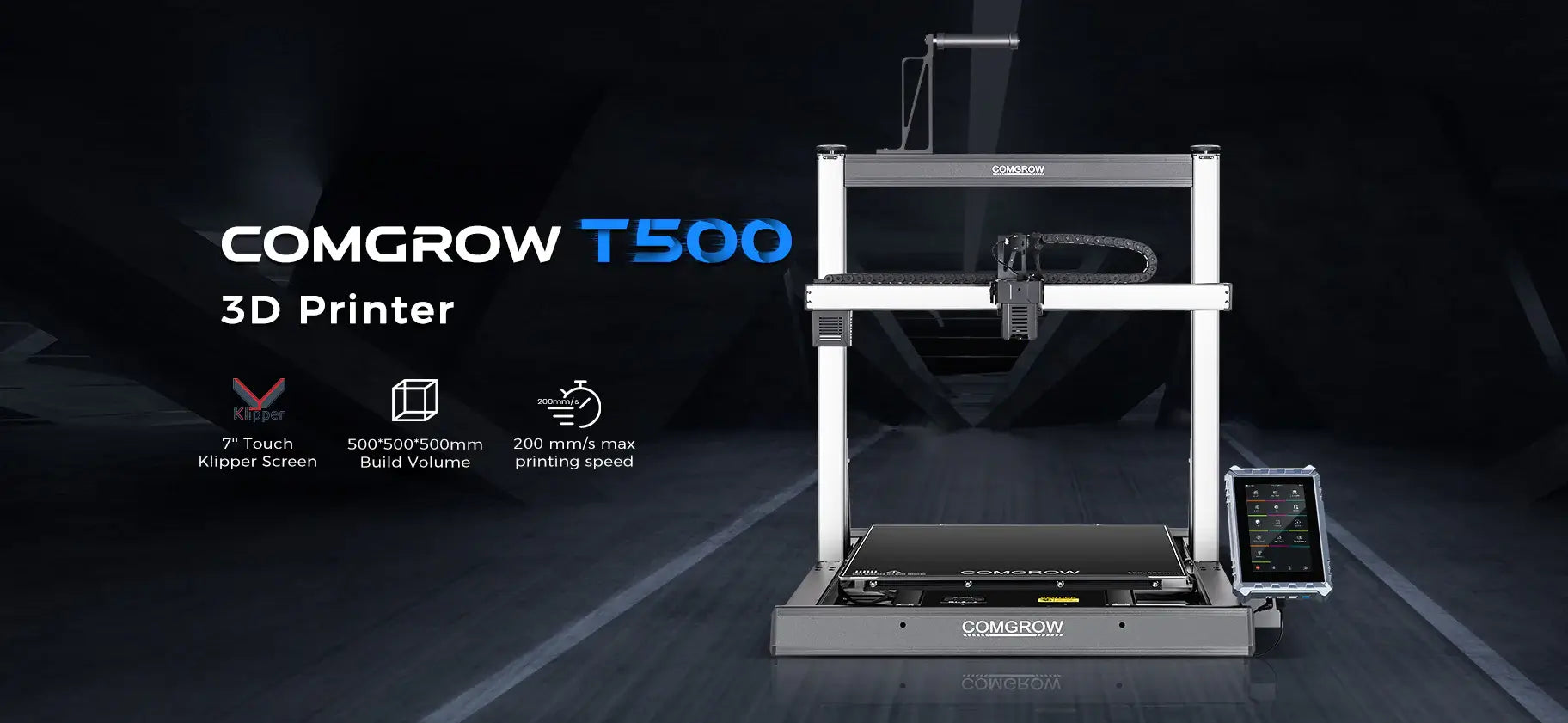 The T500 offers a substantial build volume of 500 × 500 × 500 mm, making it ideal for large-format projects and batch printing.