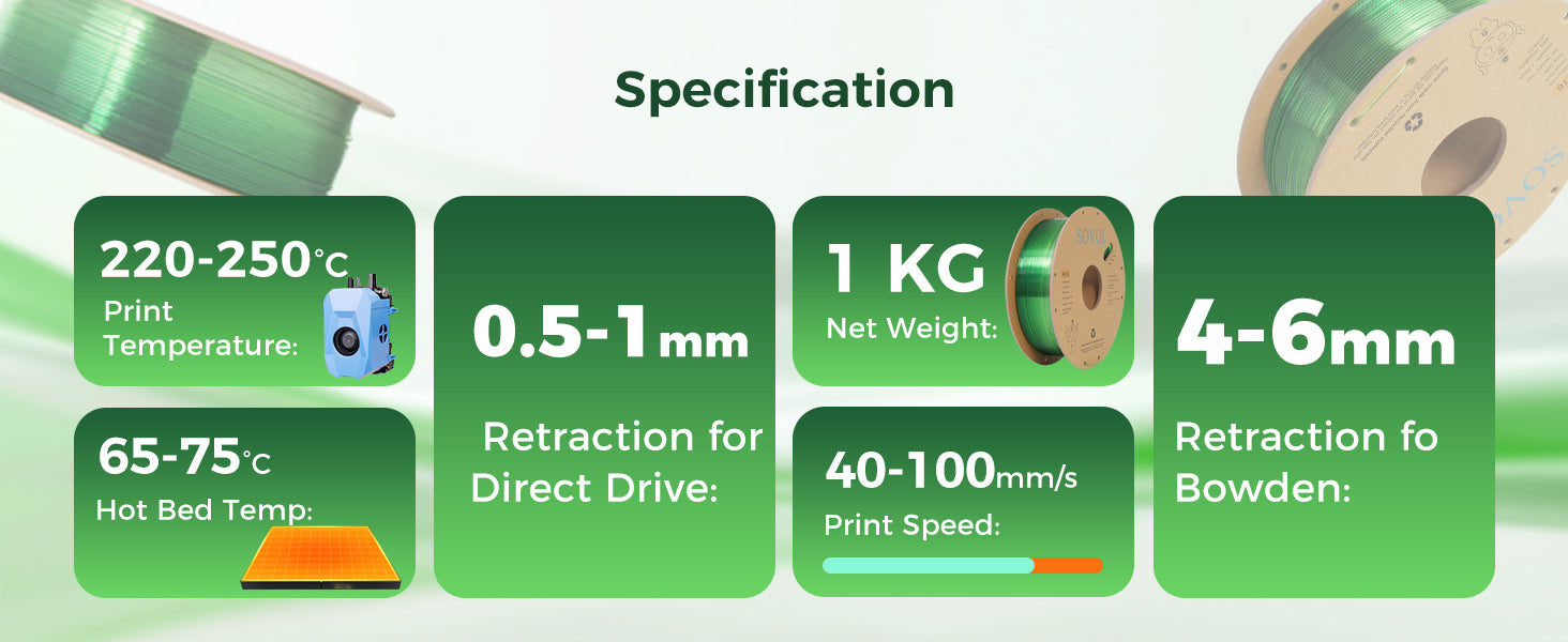 Sovol PETG 3D Filaments Gradient Green