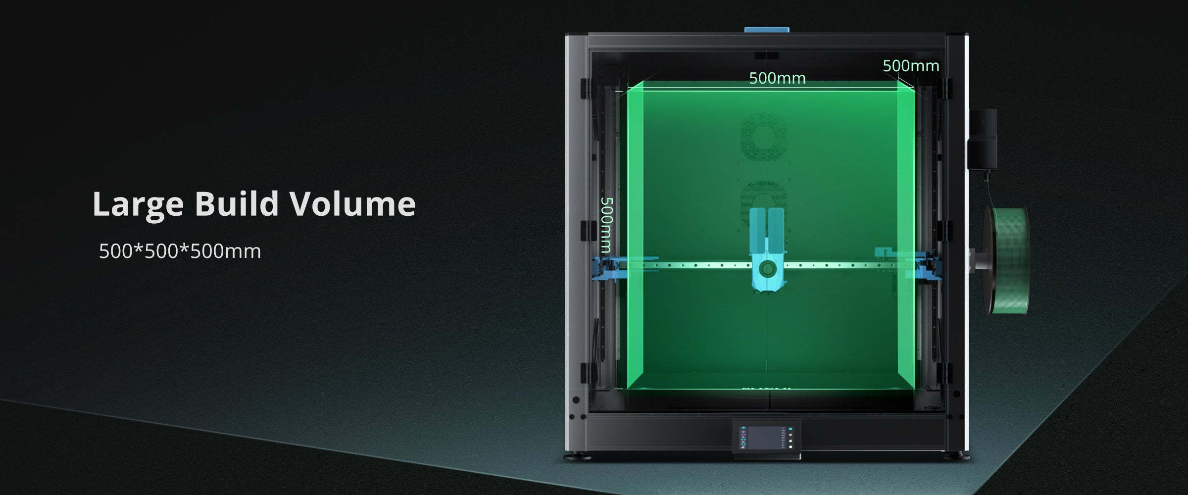 - Build Volume: 500×500×500 mm³ (500*500*450 mm³ with enclosure kit)