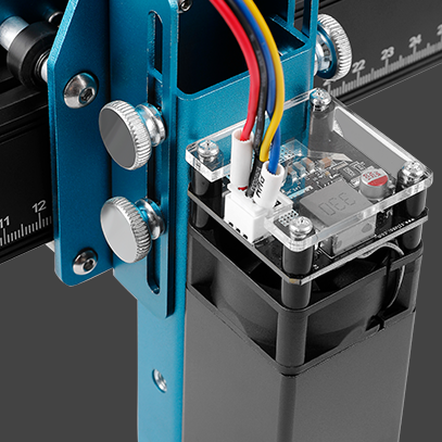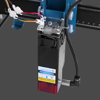 Your laser is factory-calibrated for precise focus. there's no need to put your finger on the laser to adjust the focus, just loosen the adjusting screw on the side, place the height block on top of the surface you'd like to engrave, lower the laser, then tighten the thumbscrew. That's it! You're all set.