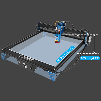 The COMGO 21 laser engraver features a functional engraving surface area of 400 x 400 mm (157 x 15.7 Inches). The larger area gives more possibilities for creativity.