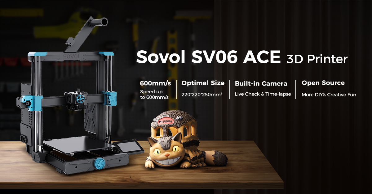 The SV06 ACE offers a build volume of 220 × 220 × 250 mm (8.66" × 8.66" × 9.84"), making it ideal for medium-sized prints and everyday functional parts.