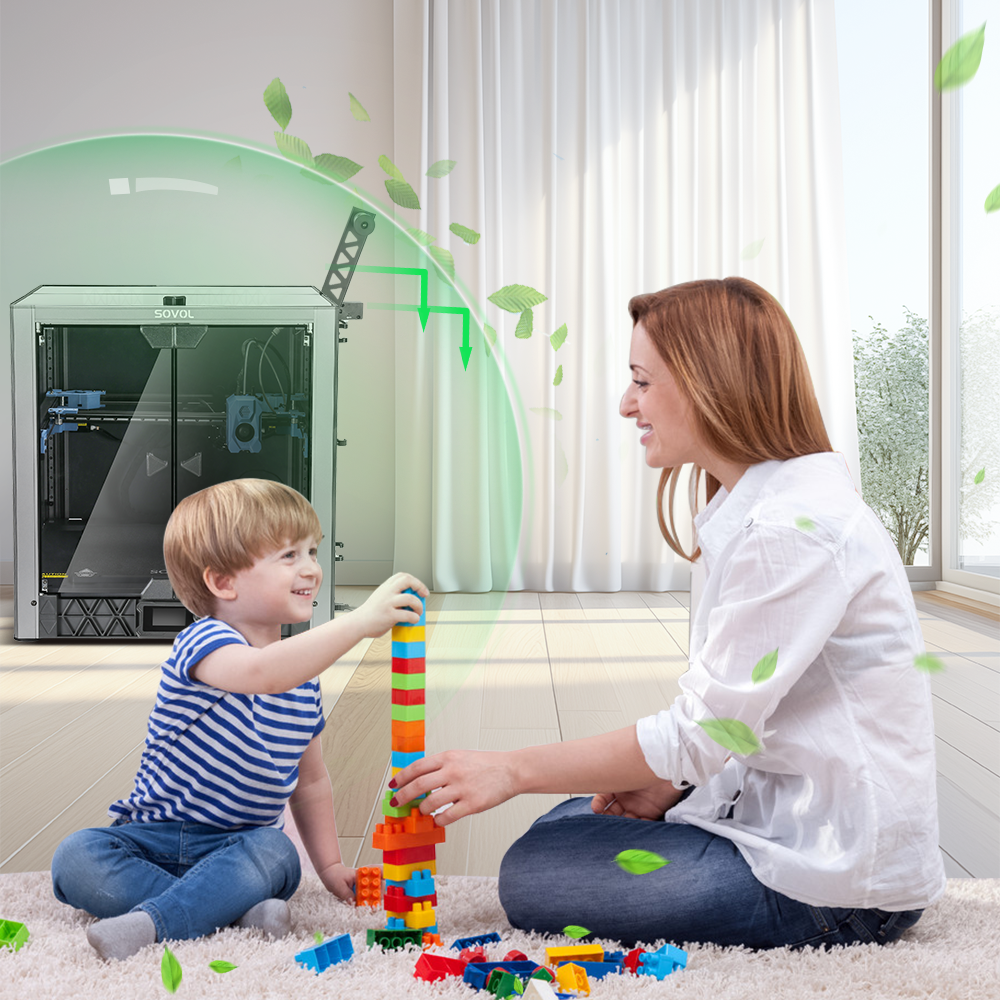 The enclosure’s built-in dust filter and exhaust fanremove harmful fumes, keeping your workspace safe and comfortable.